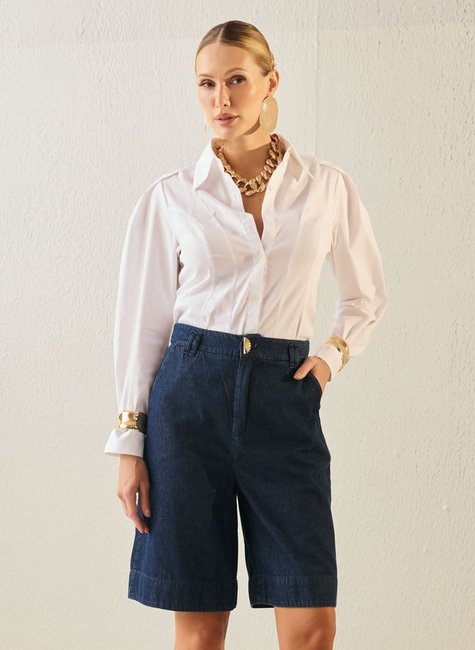 Encontre na DIMY a Bermuda Feminina Alfaiataria, confeccionada com 100% algodão jeans de alta qualidade. Perfeita para compor looks versáteis e cheios de estilo. Adquira já a sua e arrase no visual!
