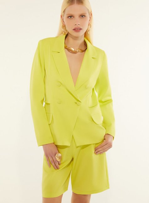 O Blazer Transpasse Duplo Feminino Dimy é confeccionado com 95% poliéster e 5% elastano, proporcionando conforto e elegância. Perfeito para compor looks sofisticados e versáteis. Adquira já o seu blazer de tecido plano Dimy e arrase em qualquer ocasião.