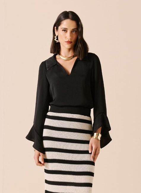 A Blusa Feminina Ampla Manga Com Babado da DIMY é feita de 100% poliéster, ideal para quem busca estilo e conforto. Feita em tecido plano de alta qualidade, é perfeita para compor looks modernos e cheios de personalidade. Adquira a sua agora e arrase na produção!