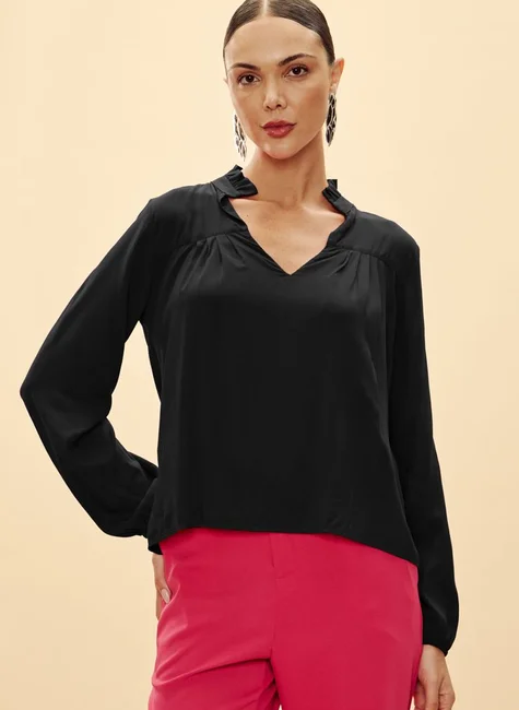 A Blusa Feminina Dimy é confeccionada em 100% viscose, proporcionando conforto e leveza. Com modelagem ampla e manga longa, é ideal para compor looks casuais e versáteis. Seu tecido plano garante caimento perfeito, destacando a feminilidade e elegância da mulher moderna. Adquira já a sua!