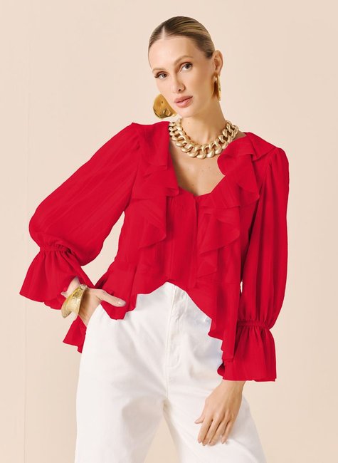 A Blusa Feminina da DIMY é confeccionada com 100% poliéster, proporcionando durabilidade e caimento perfeito. Com babados delicados, o modelo de tecido plano é ideal para compor looks sofisticados e elegantes. Garanta já a sua!