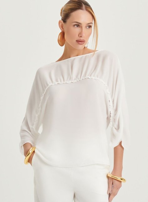 A Blusa Feminina Dimy é feita com 100% de poliéster, um tecido plano leve e confortável. Seu detalhe franzido na parte frontal traz um toque de elegância e sofisticação. Ideal para compor looks versáteis e cheios de estilo. Garanta já a sua!