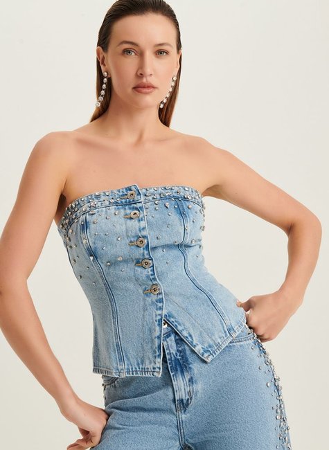 Renove seu guarda-roupa com a Blusa Feminina Corset da DIMY! Confeccionada em 100% algodão jeans, com detalhes bordados, essa peça é perfeita para compor looks modernos e cheios de estilo. Garanta já a sua e arrase nas produções do dia a dia.