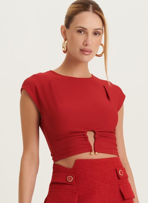 A Blusa Feminina Cropped Dimy é confeccionada em 95% poliéster e 5% elastano, proporcionando conforto e flexibilidade. Com detalhe de metal que adiciona charme ao visual, é perfeita para compor looks modernos e estilosos. Garanta a sua agora!