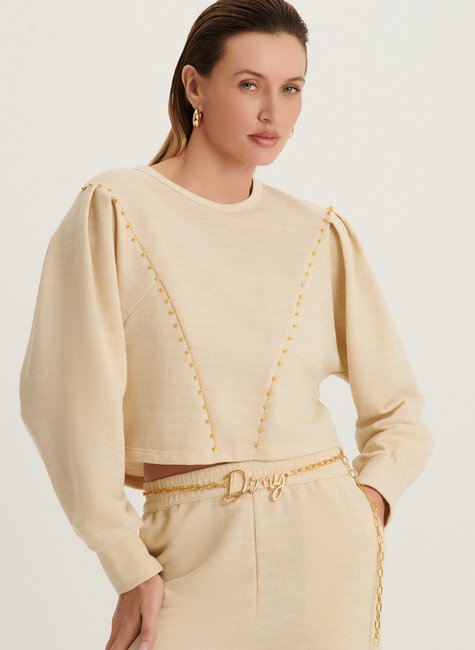 A Blusa Feminina de Moletom Dimy é confeccionada com 60% algodão, 38% poliéster e 2% poliamida, proporcionando conforto e durabilidade. Possui pregas e bordado que garantem um toque de estilo e sofisticação ao look. Ideal para compor produções casuais e cheias de personalidade.