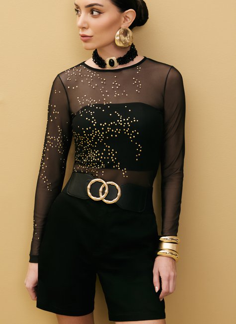A Blusa Feminina Manga Longa de Tule com Hot Fix da marca Dimy é confeccionada em 92% poliéster e 8% elastano, garantindo conforto e durabilidade. Perfeita para compor looks modernos e sofisticados, possui detalhes em tule e aplicação de hot fix, proporcionando um toque de brilho. Ideal para mulheres que buscam estilo e elegância em suas produções. Compre já a sua no site da Dimy!