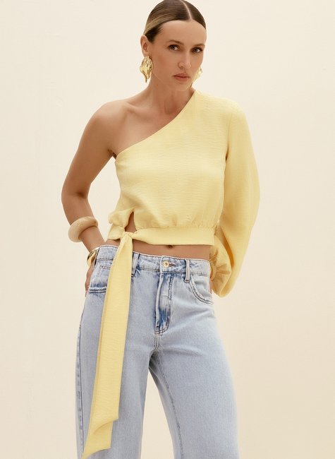 Blusa feminina ombro só Dimy, confeccionada em 100% poliéster. Ideal para compor visuais modernos e estilosos, esta peça é feita em tecido plano de alta qualidade. Perfeita para diversas ocasiões. Encontre na Dimy a blusa feminina perfeita para o seu guarda-roupa.