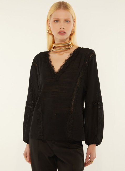 Blusa feminina da Dimy com manga 3/4 e detalhe de renda. Confeccionada em tecido plano de 75% viscose e 25% poliamida, garantindo conforto e durabilidade. Perfeita para compor looks elegantes e cheios de estilo. Encontre na loja online a sua!