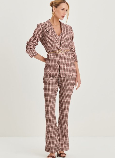 A Calça Feminina Alfaiataria Estampada Dimy é confeccionada em 95% poliéster e 5% elastano, proporcionando um caimento perfeito ao corpo. Ideal para compor looks elegantes e modernos, o tecido plano garante conforto e durabilidade. Adquira já a sua!
