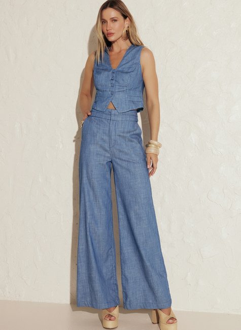 A Calça Feminina Alfaiataria Jeans da Dimy é confeccionada com 100% algodão, garantindo conforto e durabilidade. Com um design moderno e elegante, essa peça é perfeita para compor looks sofisticados e versáteis. Adquira já a sua e arrase no dia a dia!