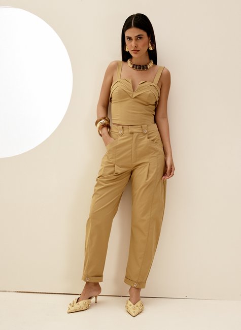 A Calça Feminina Barrel com Pregas da Dimy é confeccionada em 100% poliéster, proporcionando conforto e durabilidade. Com design elegante e moderno, é ideal para compor looks sofisticados. Adquira já a sua Calça Feminina de Tecido Plano Dimy e arrase!