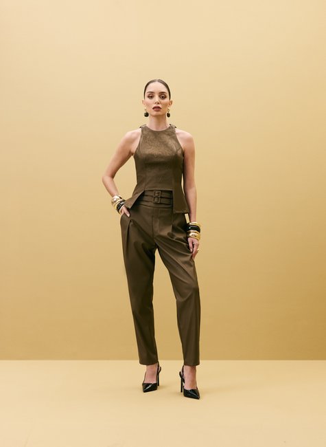 Garanta estilo e conforto com a Calça Feminina Cenoura com Pregas da Dimy. Feita em 50% poliéster e 50% poliuretano, esse tecido plano proporciona leveza e durabilidade. Ideal para compor looks modernos e versáteis. Aproveite a qualidade da marca Dimy com 50% de desconto. Compre já!