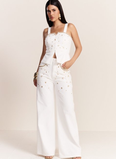 Compre a Calça Feminina Denim Bordado Pedraria da Dimy, feita 100% em algodão jeans de alta qualidade. A peça combina estilo e conforto, perfeita para diversas ocasiões. Garanta já a sua no site da Dimy e arrase no visual!