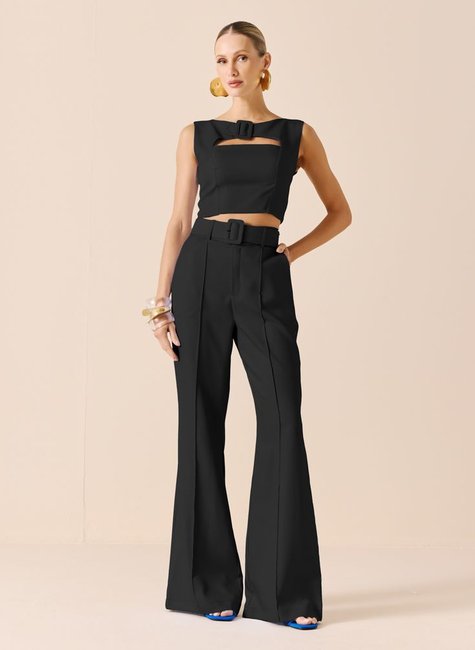 Experimente o estilo único e sofisticado da Calça Feminina Flare Dimy, confeccionada com 90% poliéster e 10% elastano. Com um cinto forrado incluso, essa peça de tecido plano é perfeita para compor looks elegantes e modernos. Adquira a sua agora e arrase!