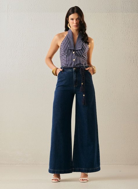 A Calça Feminina Kate Wide Leg Com Cinto da Dimy é feita com 100% algodão jeans, garantindo conforto e durabilidade. Com modelagem wide leg e cinto incluso, essa peça é perfeita para compor looks modernos e estilosos. Adquira já a sua!