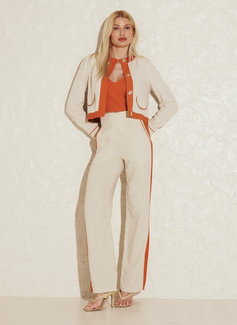 A Calça Feminina Dimy é a combinação perfeita de estilo e conforto. Feita com 74% de viscose, 17% de linho e 9% de algodão, o tecido plano proporciona um caimento impecável. Seu design bicolor e corte reto garantem um visual moderno e versátil. Ideal para compor looks elegantes e despojados. Adquira já a sua e arrase!