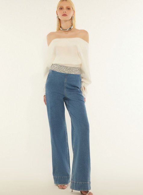 A Calça Flare Dimy é perfeita para compor looks cheios de estilo e ousadia. Confeccionada em algodão e elastano, garante conforto e caimento impecável. O cós com aplicação de strass e pérolas adiciona um toque de sofisticação ao visual. Ideal para mulheres que buscam elegância e modernidade em suas produções.