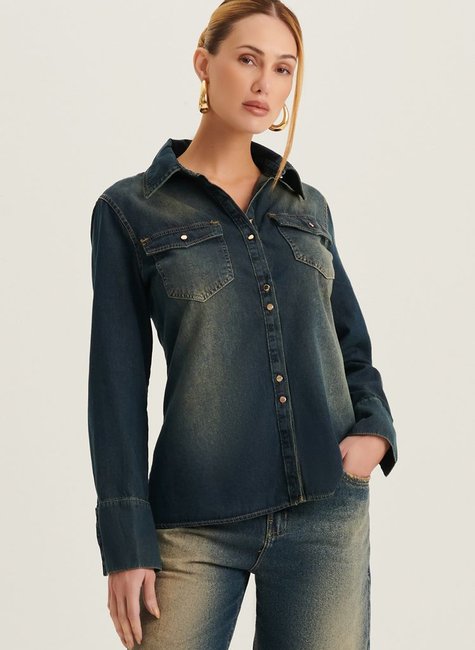 A camisa feminina alongada Slom da Dimy é perfeita para compor um look moderno e confortável. Feita 100% em algodão jeans, essa peça conta com detalhes na manga que adicionam um toque de estilo único ao visual. Garanta a sua agora e arrase no dia a dia!