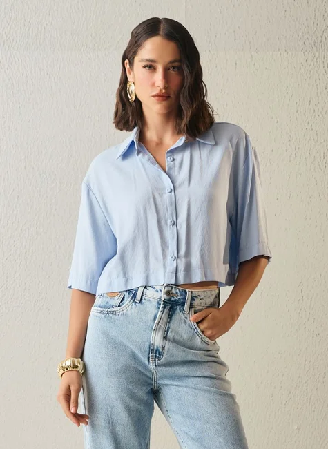 Seja moderna e confortável com a Camisa Feminina Boxy Cropped Manga Curta da DIMY. Confeccionada em 55% viscose e 45% poliéster, esta peça de tecido plano é perfeita para compor looks descolados e cheios de estilo. Adquira já a sua e arrase no visual!