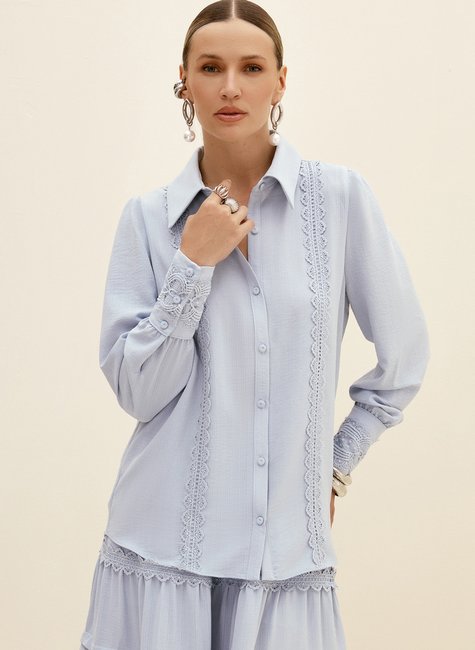 Levante o seu estilo com a elegante Camisa Feminina Dimy com aviamento de rendas. Feita de 100% poliéster tecido plano, esta peça é perfeita para qualquer ocasião. Adicione um toque de sofisticação ao seu guarda-roupa com esta camisa feminina Dimy. Compre agora e arrase no look!