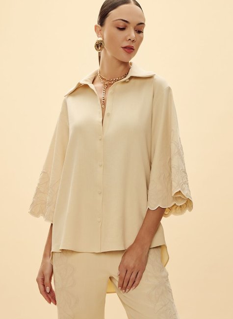 Camisa feminina confeccionada em tecido plano de viscose, com detalhes bordados. Modelo exclusivo da Dimy, feito com 56% de viscose, 33% de poliéster e 11% de poliamida. Perfeito para compor looks sofisticados e cheios de estilo. Adquira já a sua!