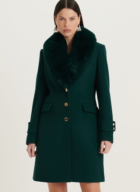 O casaco feminino Dimy é confeccionado com 90% poliéster e 10% lã, garantindo maciez e conforto. Sua gola de pelo e tecido plano proporcionam um visual elegante e sofisticado. Ideal para os dias mais frios, este casaco é perfeito para compor looks cheios de estilo e personalidade.