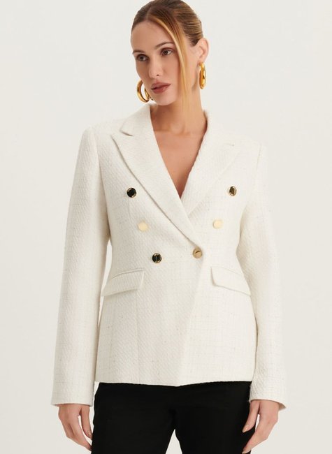 Descubra o charme do Casaco Feminino Tweed De Poliéster da Dimy. Confeccionado em tecido plano de alta qualidade, possui composição de 85% poliéster, 10% lã e 5% fibras metálicas. Ideal para compor um look elegante e sofisticado em diversas ocasiões. Garanta já o seu!