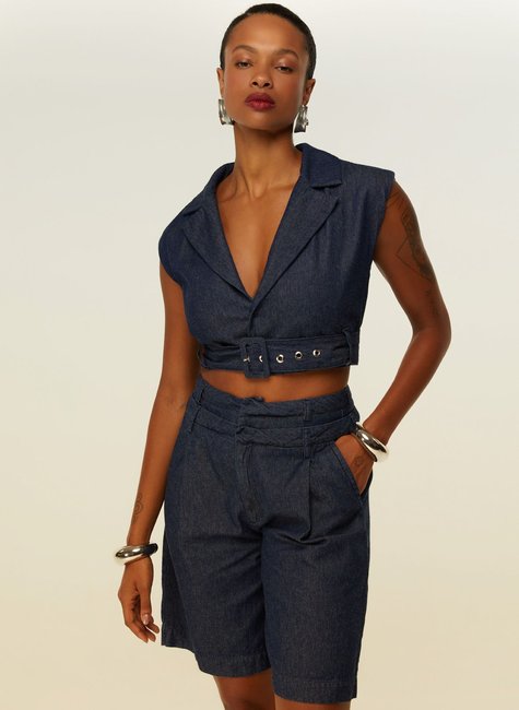 Incremente seu visual com o Colete Alfaiataria Jeans com Cinto da DIMY. Feito em 100% algodão, esse item é perfeito para compor looks cheios de estilo e personalidade. A peça ideal para quem busca versatilidade e conforto no dia a dia. Adquira o seu agora e arrase!