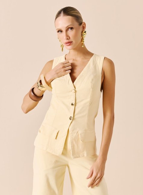 O Colete Feminino Dimy é produzido com 97% algodão e 3% elastano, garantindo conforto e ajuste perfeito ao corpo. Com abertura frontal e design moderno de algodão jeans, é uma peça versátil e estilosa para compor looks femininos. Adquira já o seu!