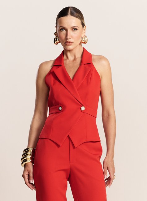 O Colete Feminino da Dimy é confeccionado em 90% poliéster e 10% elastano, garantindo conforto e durabilidade. Com detalhe de botão de strass, este elegante colete de tecido plano é perfeito para compor looks sofisticados e modernos. Adquira já o seu e arrase na produção!