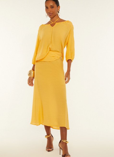 Renove seu guarda-roupa com o Conjunto Feminino Dimy, composto por blusa com amarração e saia de tecido plano. Feito com 75% viscose e 25% poliamida, garantindo conforto e estilo. Perfeito para compor looks modernos e cheios de personalidade. Aproveite!