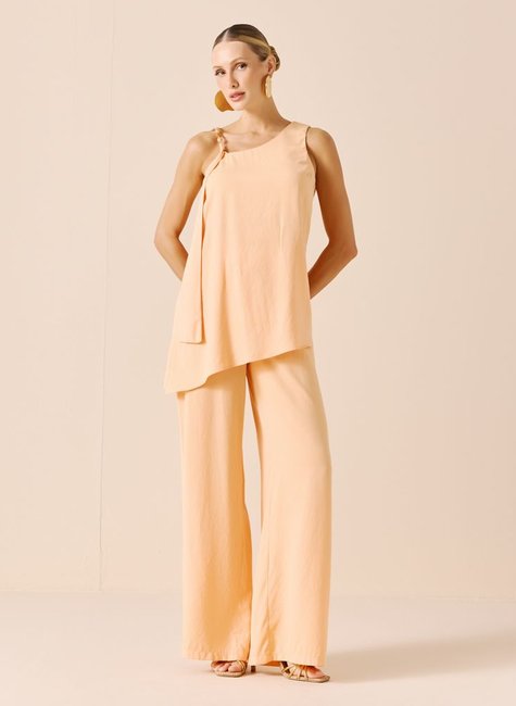 Conjunto feminino Dimy com blusa e calça pantalona em tecido plano de 55% viscose e 45% poliéster. Ideal para mulheres modernas e cheias de estilo. Perfeito para ocasiões casuais e formais. Adquira já o seu conjunto e arrase no look!