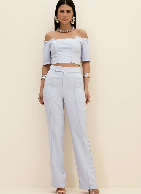 Conjunto feminino Dimy composto por top ombro à ombro e calça solta confeccionados em 93% poliamida e 7% poliéster. O tecido plano de poliamida proporciona conforto e elegância. Ideal para looks casuais e modernos. Adquira já o seu conjunto Dimy!