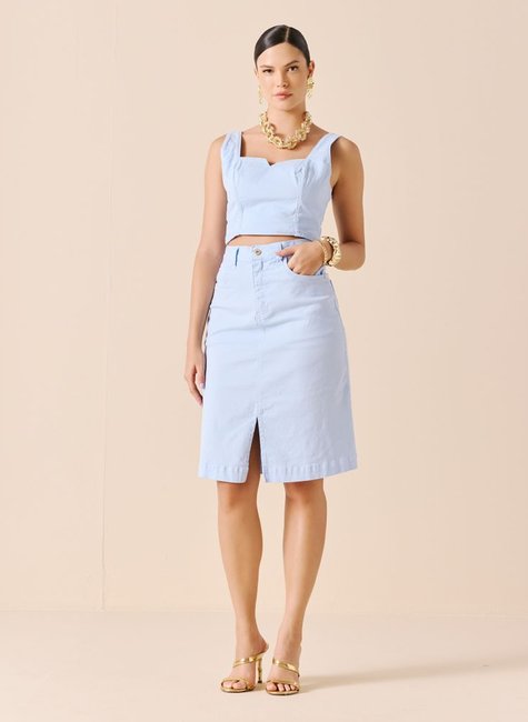 A Saia Feminina Dimy, feita com 97% de algodão e 3% de elastano, é a peça perfeita para compor um look moderno e versátil. Com fenda frontal e tecido em algodão jeans, essa saia garante conforto e estilo. Adquira já a sua e arrase nas produções do dia a dia!
