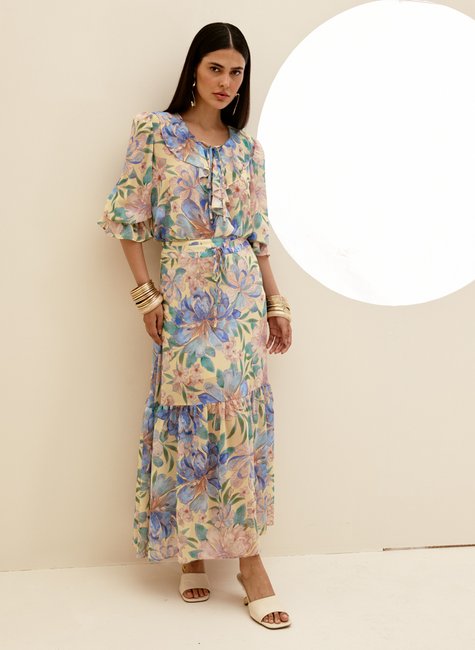 A Saia Feminina Longa Estampada da Dimy é confeccionada em 100% poliéster, garantindo um caimento perfeito. Ideal para compor looks elegantes e modernos, essa peça em tecido plano é indispensável no guarda-roupa feminino. Aproveite a versatilidade e estilo único da saia Dimy.