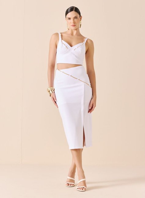 A Saia Feminina Reta com Corrente da Dimy é confeccionada em 95% de poliéster e 5% de elastano, perfeita para compor looks versáteis e elegantes. Com tecido plano de alta qualidade, essa peça é ideal para todas as ocasiões. Adquira já a sua e arrase no visual!