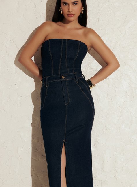 A Saia Feminina Super Midi Dimy é confeccionada com 98% de algodão e 2% de elastano, oferecendo conforto e um ajuste perfeito ao corpo. Feita em tecido jeans feminino, é a peça ideal para compor looks modernos e versáteis. Adquira já a sua!
