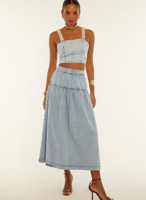 A Saia Midi Com Recortes Frente Feminino da DIMY é perfeita para quem busca conforto e estilo. Confeccionada em 100% algodão jeans, a peça possui detalhes em recortes que garantem modernidade ao look. Ideal para diversas ocasiões, do casual ao mais formal. Aproveite!