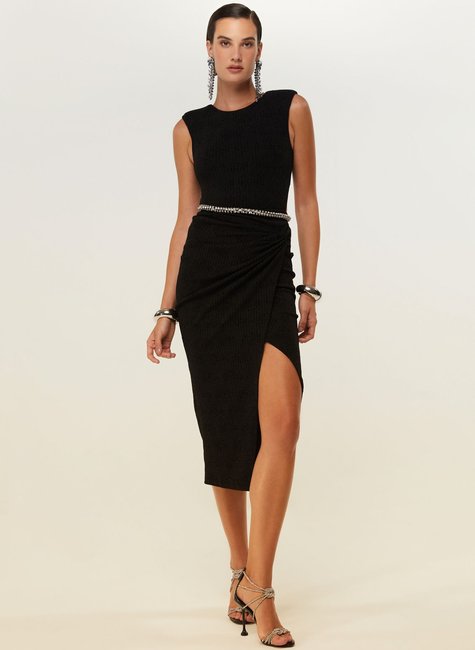 A Saia Super Midi com Fenda Feminino da Dimy é perfeita para compor looks versáteis e cheios de estilo. Confeccionada em 94% poliéster e 6% elastano, possui caimento impecável e fenda charmosa. Ideal para qualquer ocasião, do trabalho ao happy hour. Adquira já a sua!