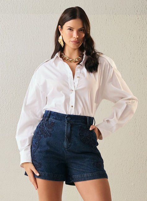Descubra o charme e conforto do Shorts Feminino Alfaiataria Jeans Com Bordado da Dimy! Feito com 100% algodão, este shorts feminino combina estilo e qualidade. Perfeito para um visual moderno e despojado. Garanta já o seu!