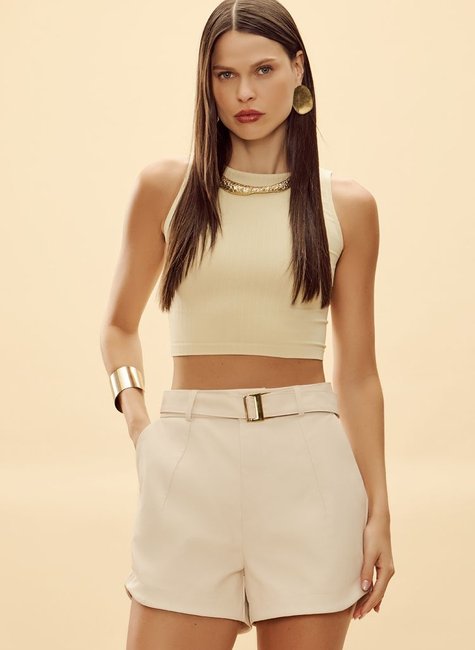 O Shorts Feminino Dimy é feito com 50% de poliéster e 50% de poliuretano, garantindo durabilidade e conforto. Este modelo possui uma faixa e fivela, oferecendo um toque moderno e elegante ao look. Ideal para compor diversas produções com estilo e sofisticação.