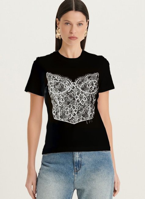 Sinta-se confortável e estilosa com a T-Shirt Feminina Baby Look Estampa Corset da Dimy. Fabricada em 100% algodão de malha, essa peça é perfeita para compor looks modernos e cheios de personalidade. Adquira já a sua e arrase no visual!