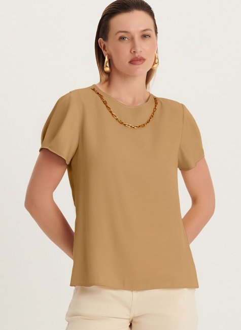 A T-shirt feminina Dimy é confeccionada em 50% viscose e 50% poliéster, garantindo conforto e durabilidade. Com detalhe de corrente, é perfeita para compor looks estilosos e modernos. Adquira a sua agora mesmo e arrase no visual!