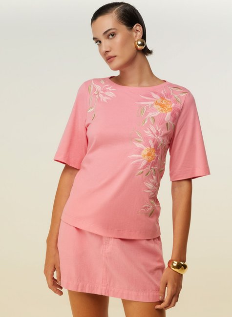 A T-shirt feminina da Dimy é confeccionada em 100% algodão de malha, garantindo conforto e durabilidade. Possui manga 3/4 e um bordado delicado que valoriza o visual. Ideal para compor looks casuais e cheios de estilo. Encontre a sua no site da Dimy!