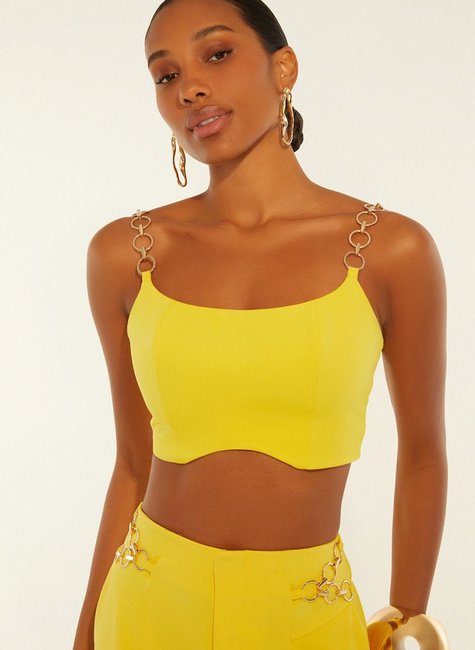 O Top Feminino Dimy é confeccionado em 95% poliéster e 5% elastano, proporcionando conforto e elasticidade. Possui alças de argolas que adicionam um toque moderno ao visual. Ideal para compor looks versáteis e cheios de estilo. Aproveite!