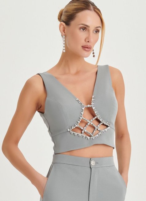 O Top Feminino Dimy é confeccionado em tecido plano de poliéster e elastano, proporcionando conforto e flexibilidade. Destaque para o bordado de cristal, que agrega sofisticação ao visual. Perfeito para compor looks elegantes e cheios de estilo. Adquira já o seu!