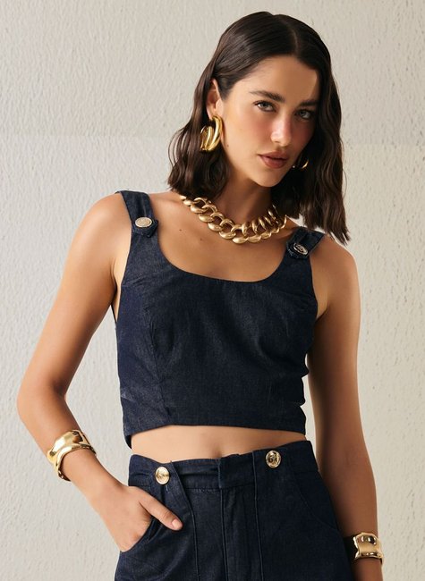 O Top Feminino Dimy é feito com 100% algodão de alta qualidade, trazendo conforto e estilo para o seu look. Com maxi botões e detalhes em látex nas costas, esse top de algodão jeans é a escolha perfeita para qualquer ocasião. Garanta o seu agora e arrase no visual!