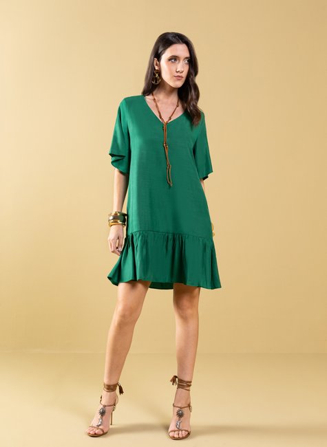 Adquira agora o vestido curto de manga curta da DIMY, feito com 57% viscose e 43% poliéster. Confeccionado em tecido plano de viscose de alta qualidade, este vestido é perfeito para diversas ocasiões. Garanta já o seu!