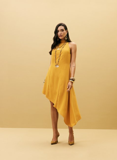 O Vestido Feminino Assimétrico Com Recorte da Dimy é confeccionado em 100% poliéster, garantindo durabilidade e conforto. Perfeito para ocasiões especiais, possui design moderno e elegante, destacando-se pelo caimento impecável. Adquira já o seu e arrase no visual!