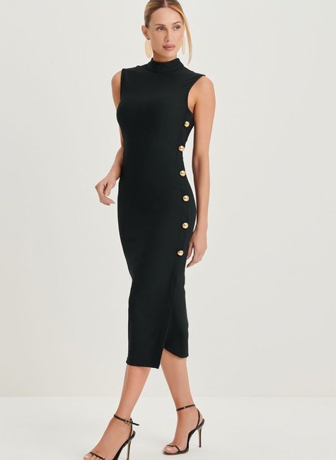 Sinta-se elegante e confortável com o Vestido Feminino Super Midi da Dimy. Feito com 95% de poliéster e 5% de elastano, este vestido possui um design sofisticado com botões laterais. Ideal para qualquer ocasião, o vestido é versátil e fácil de combinar. Adquira já o seu!